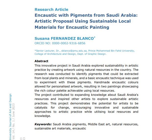 Delve into my scholarly contributions exploring the intersections of visual arts, gender dynamics, and new media. Highlights include journal articles on innovative encaustic techniques using sustainable Saudi pigments and the impact of algorithmic architecture on design education. Book chapters and proceedings explore Saudi women’s artistic empowerment and cultural heritage through the use of beeswax and local materials. Discover how tradition meets modernity.